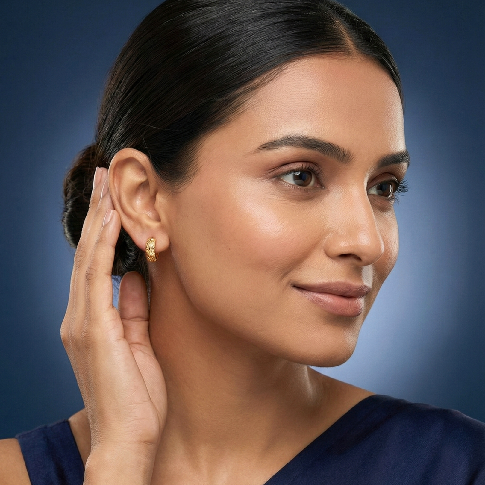 The Vintage Vine Huggie Hoops are inspired by the intricate carvings of antique gold jewelry and the timeless beauty of natural foliage. They are designed for those who appreciate a luxurious, aged aesthetic and wish to wear a piece with depth and character, symbolizing enduring elegance.